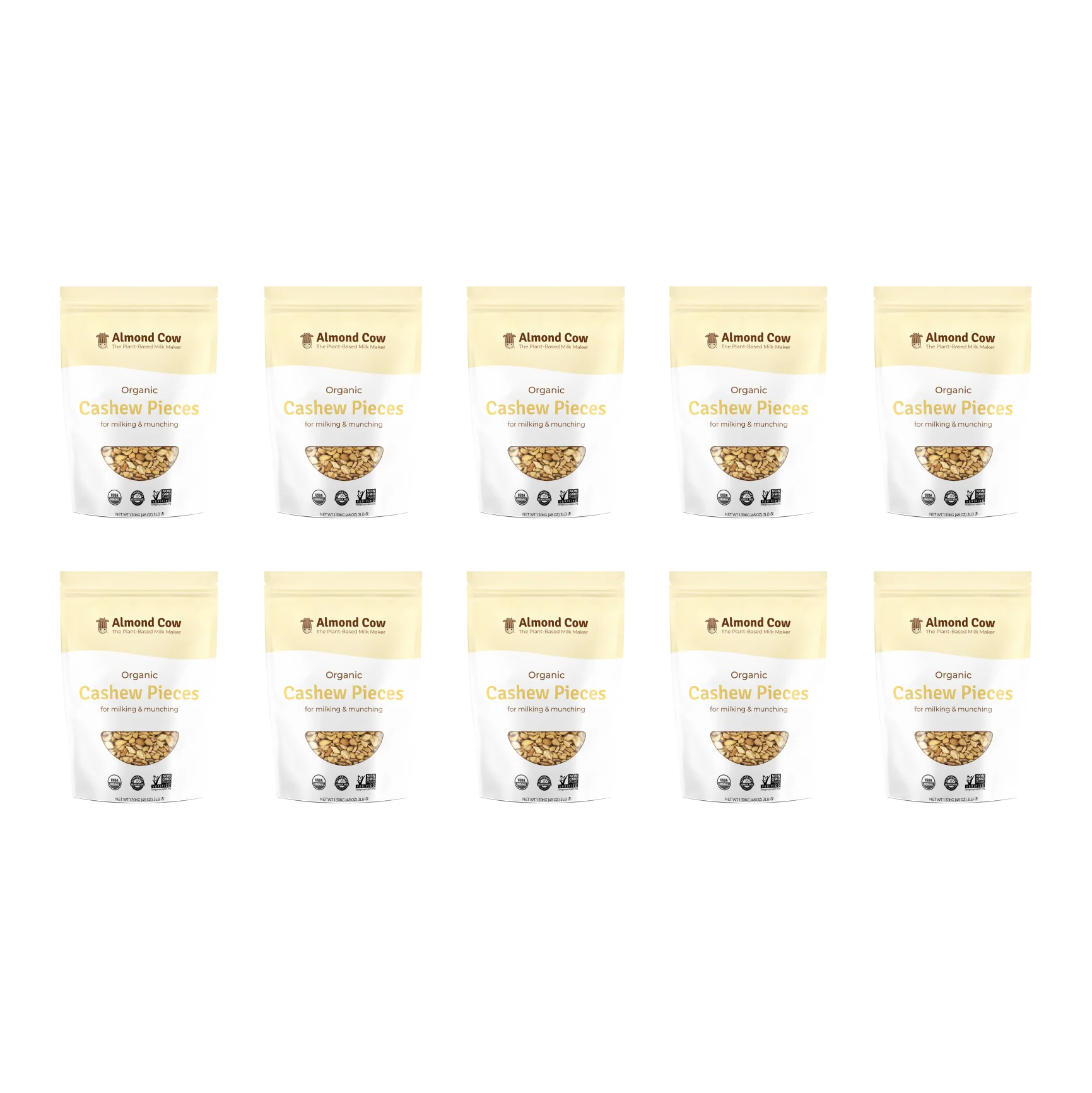 10 bags of our high quality Organic Cashew Pieces, sourced specifically for making deliciously creamy cashew milk from home. Think of cashew milk like almond milks' creamier cousin!